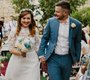 Happy Wedding Couple Walk Together